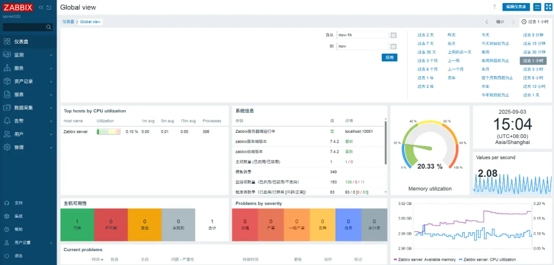 ## 注意:使用默认的 Admin:zabbix 初次登录,登录后修改密码